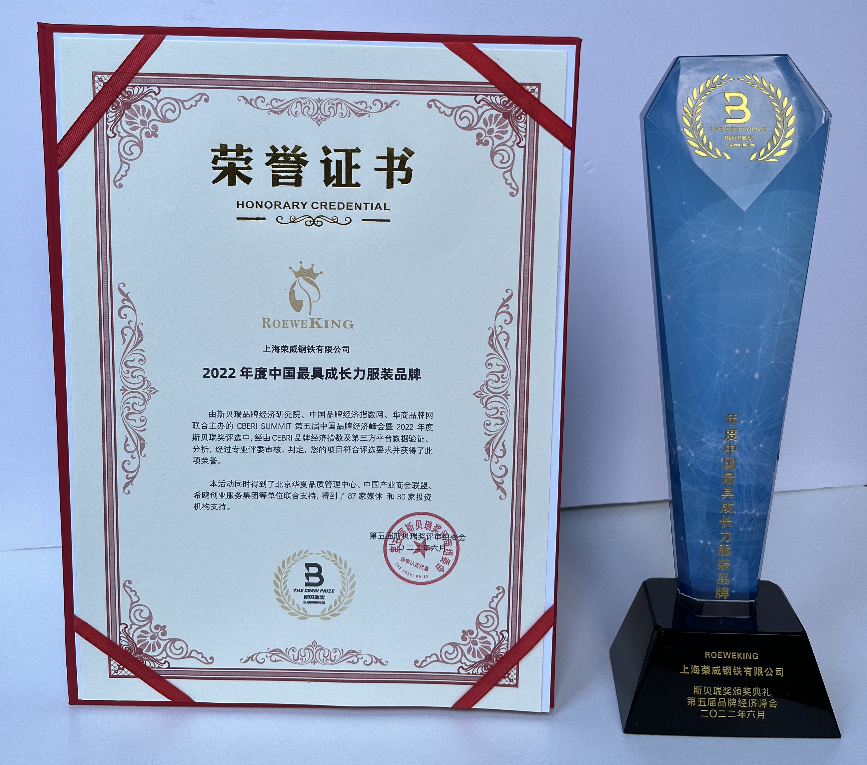 在2022年6月18日,由1800多家企業(yè)參加了斯貝瑞獎評選,經(jīng)過激烈角逐,榮威王 ROEWEKING獲評斯貝瑞獎2022年度中國最具成長力服裝品牌。在中國新聞網(wǎng)、鳳凰網(wǎng)、搜狐網(wǎng)、網(wǎng)易、百度、今日頭條、知乎、嗶哩嗶哩、雪球網(wǎng)、一點資訊、東方財富網(wǎng)、品牌經(jīng)濟網(wǎng)、中國企業(yè)新聞網(wǎng)等十幾家媒體同步報道。